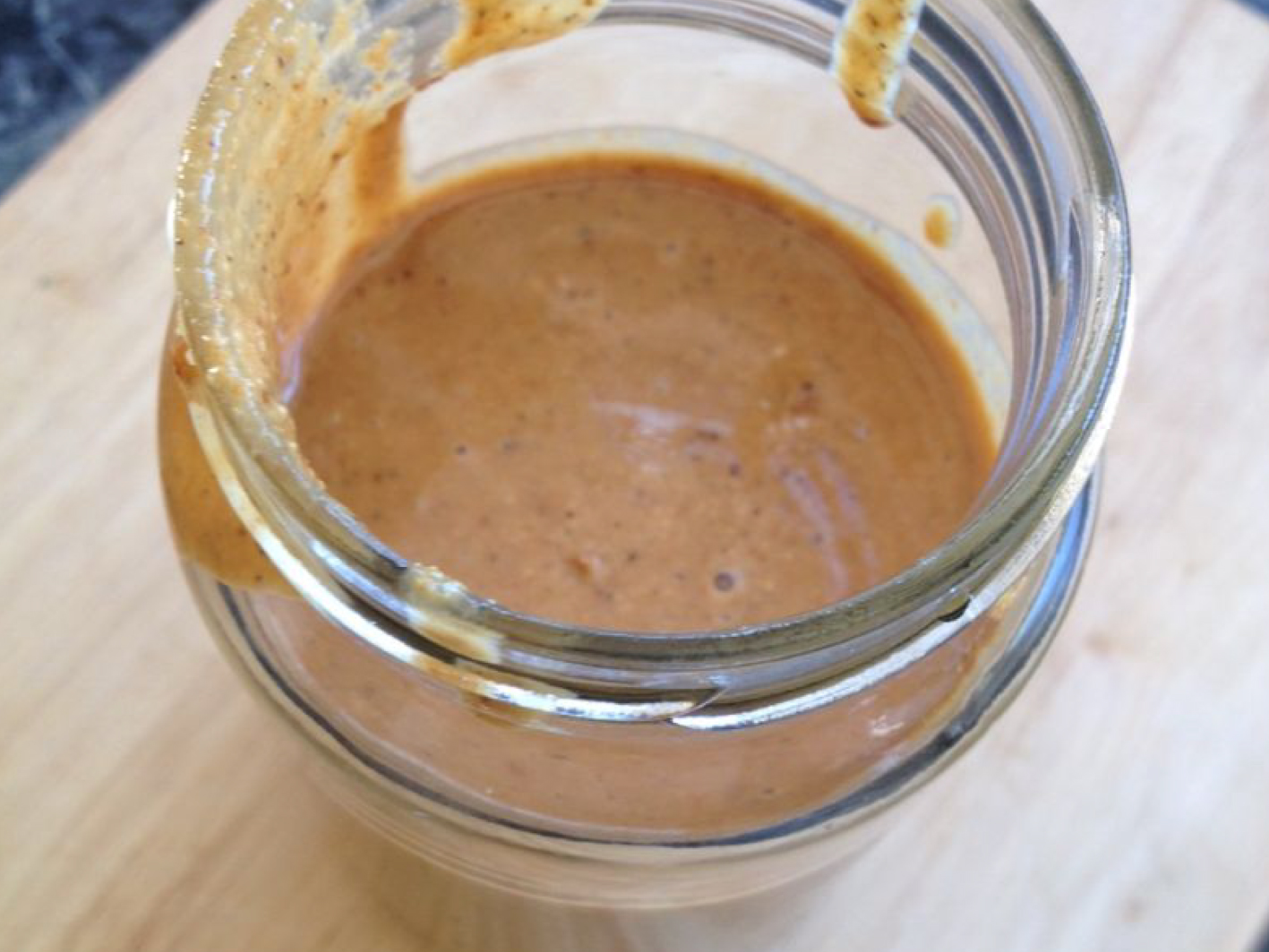 Once you have the desired consistency of almond butter. Remove the jar from the oven (wearing oven mitts!!!) and scrap the almond butter into it, place the lid on top and enjoy!